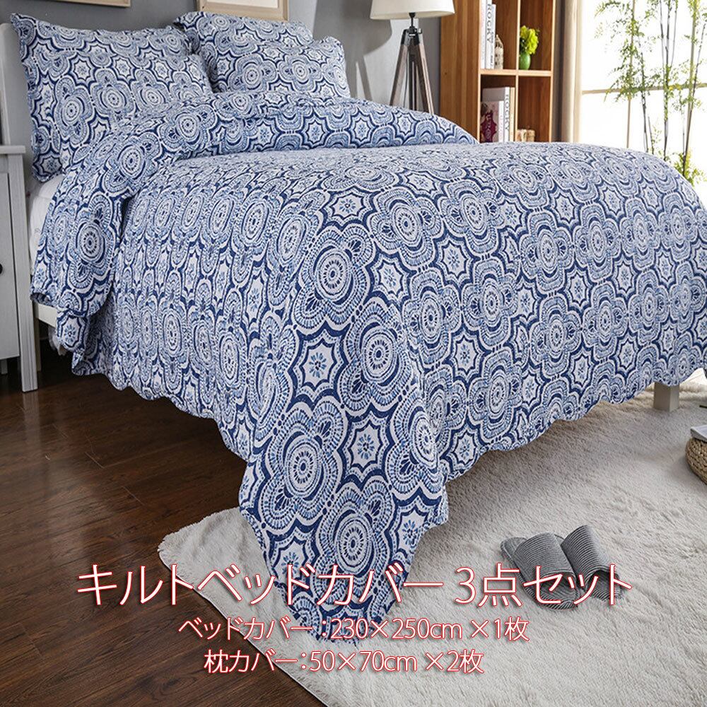 BT18-051キルトベッドカバー3点セット100%綿マルチカバー キルティング 日本天猫