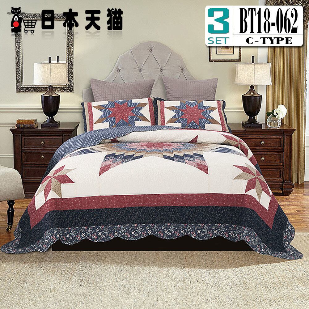 BT18-062-Cキルトベッドカバー3点セット100%綿マルチカバー キルティング 日本天猫